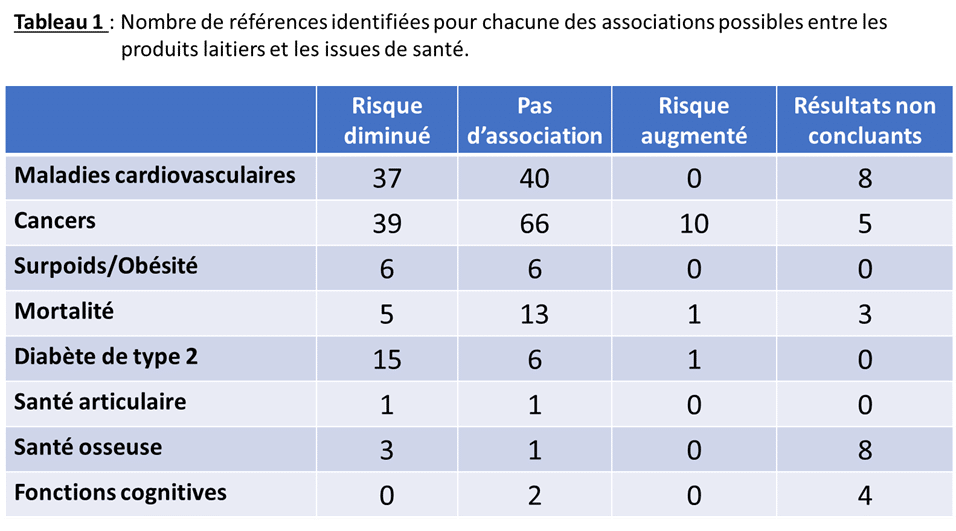 - 48,0 % ne montrent pas d’association, indiquant un « effet neutre » des produits laitiers ;