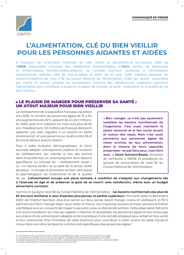 L’alimentation, clé du bien vieillir pour les personnes aidantes et aidées